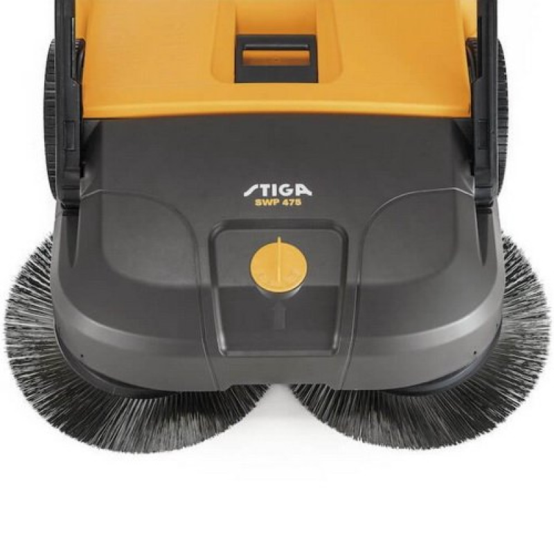 Підмітальна машина STIGA SWP475 — ручний інструмент для прибирання пилу, листя та дрібного сміття на твердих поверхнях. Робоча ширина 75 см і щітки діаметром 410 мм забезпечують ефективне очищення ділянок різного типу. Продуктивність до 2900 м²/год дозволяє обробляти середні та великі площі. Контейнер 50 л зменшує частоту очищення. Конструкція передбачає регулювання висоти щіток.