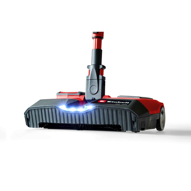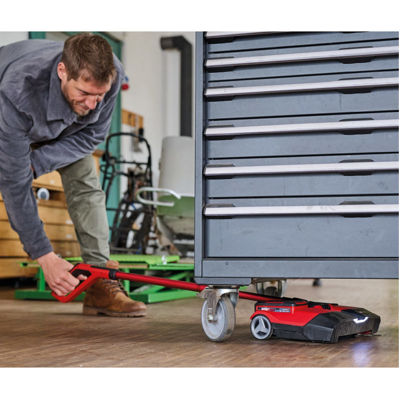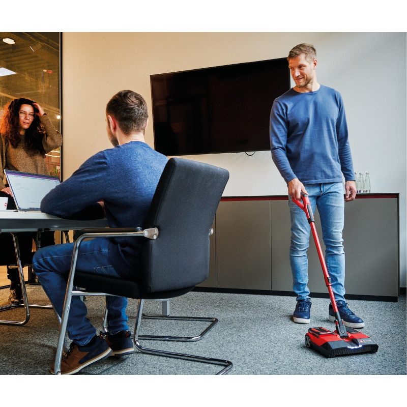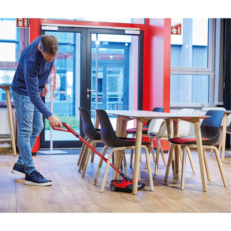 Акумуляторний підмітальний пристрій Einhell TE-FS 18 Li-Solo — компактний і зручний помічник для сухого прибирання твердих підлог і килимів. Оснащений щіткою 250 мм, бічною щіткою для прибирання вздовж країв, контейнером для збору бруду 400 мл та вбудованим LED-підсвічуванням. Має телескопічну ручку з м’якою накладкою, поворотне з’єднання, прогумовані колеса та функцію автономного стояння. Сумісний з системою Power X-Change. Постачається без акумулятора та зарядного пристрою.