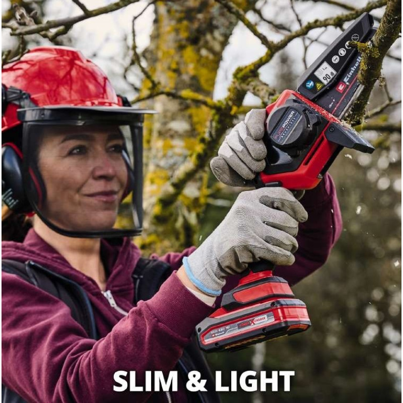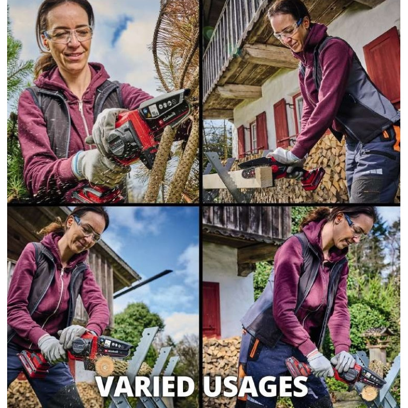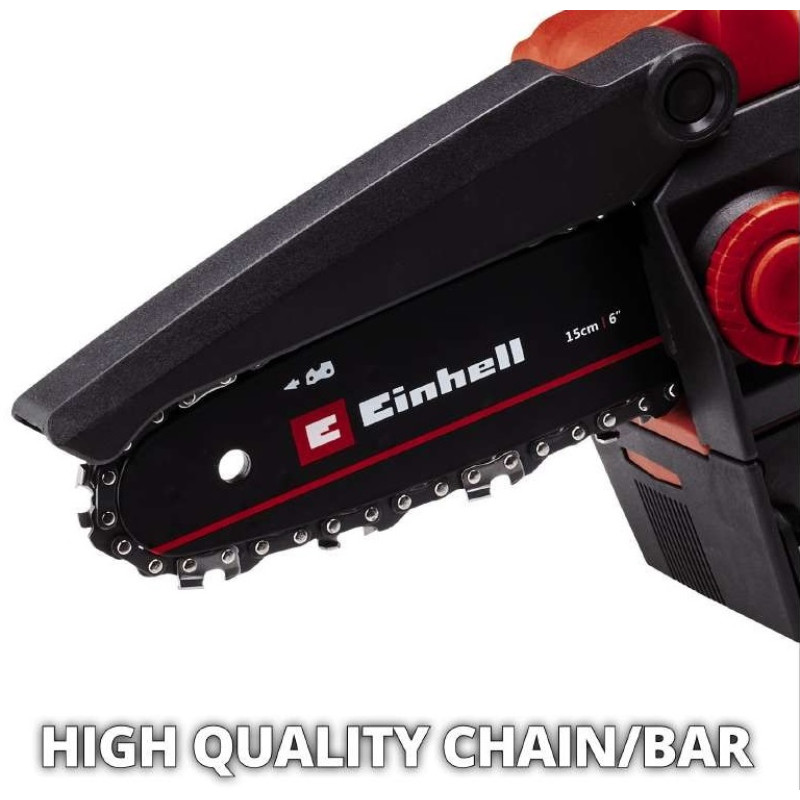 Акумуляторна обрізна ланцюгова пила Einhell GE-PS 18/15 Li BL Kit — це зручний інструмент для обрізки дерев і кущів, а також для подрібнення зелених живців і для дрібних тесаних робіт. Компактна пила є членом сімейства Einhell Power X-Change і може поєднуватися з усіма акумуляторами та зарядними пристроями сімейства систем.
