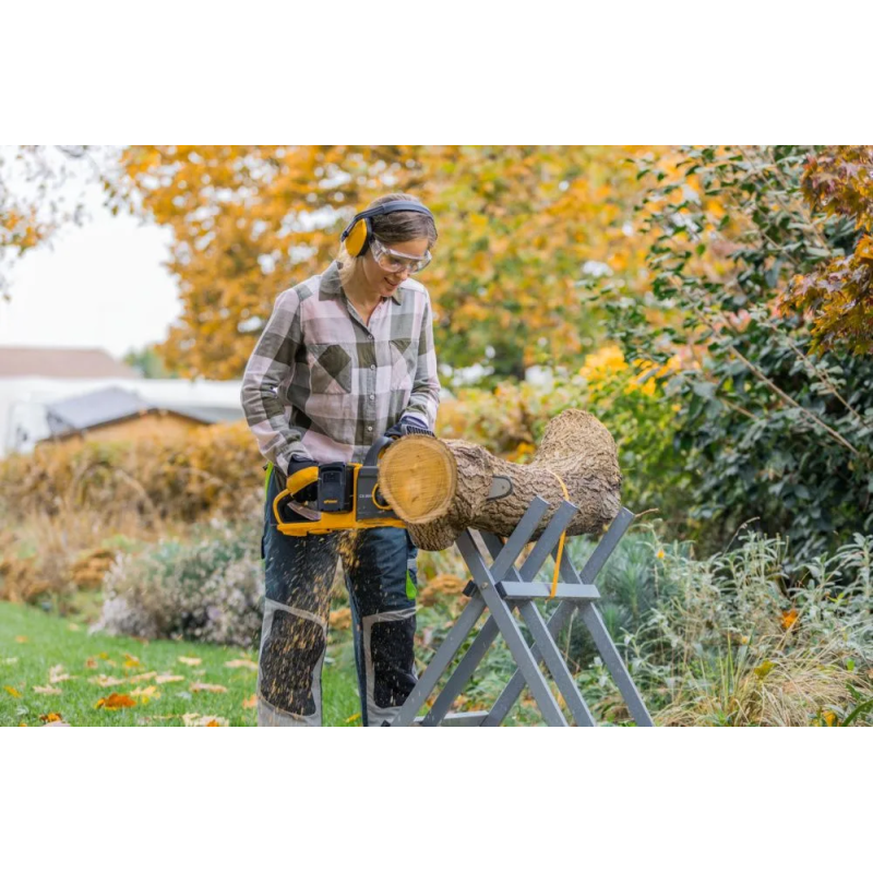 Акумуляторна ланцюгова пила STIGA CS300eKit призначена для регулярних робіт із деревиною. Система живлення 40 В (2×20 В) забезпечує збалансовану продуктивність і автономність. Шина Oregon довжиною 30 см підтримує точний і стабільний різ. Швидкість ланцюга 14.5 м/с підходить для обробки гілок і заготовок. Вбудований зарядний пристрій спрощує підготовку до роботи.