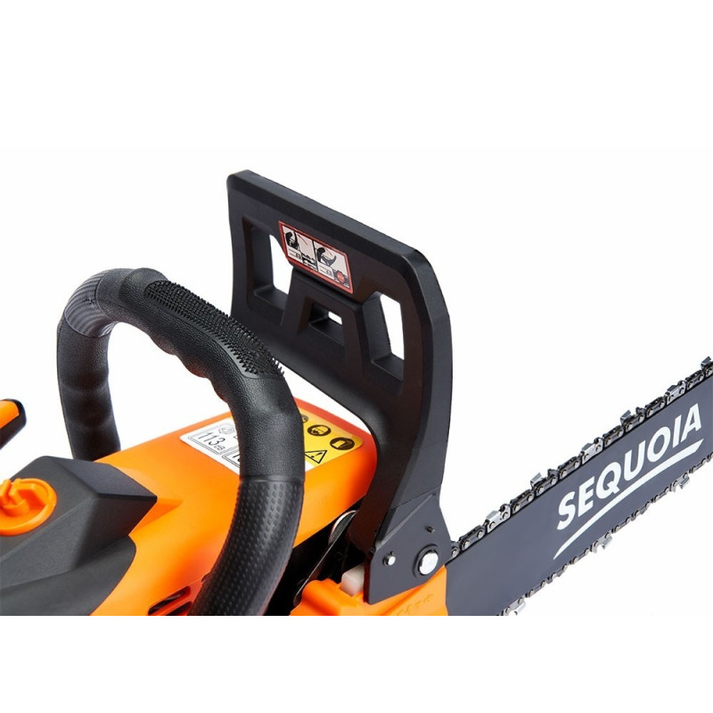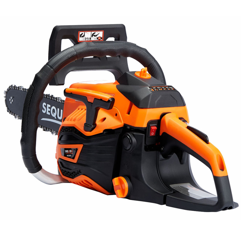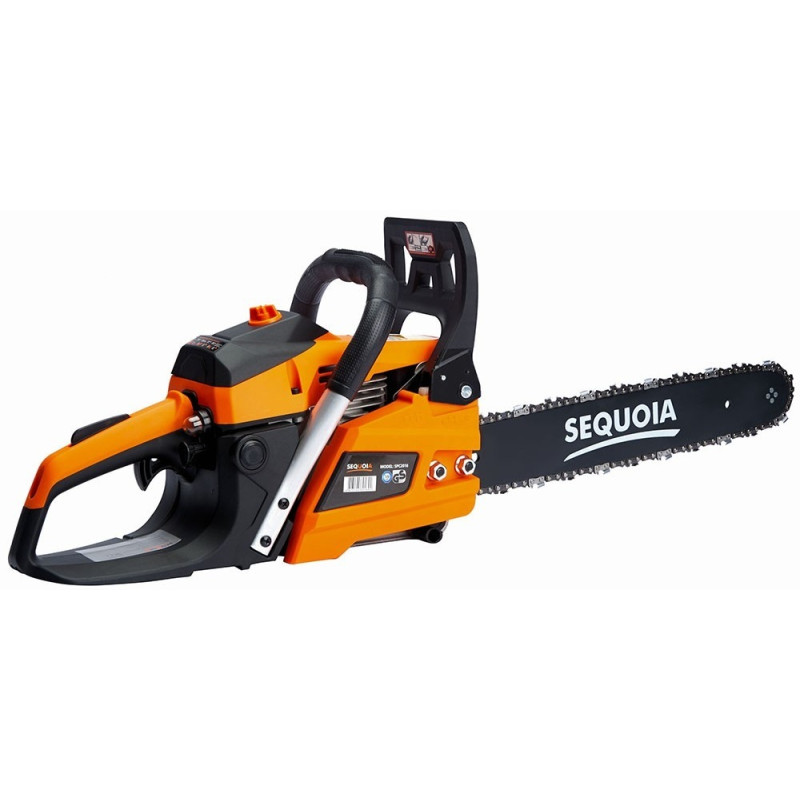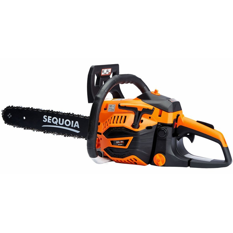 Бензинова ланцюгова пила SEQUOIA SPC2016 оснащена двотактним двигуном об’ємом 40 см³ та потужністю 2 кВт. Шина 40 см з кроком ланцюга 3/8" та швидкістю ланцюга 25 м/с забезпечує ефективний різ деревини середньої твердості. Об’єм паливного бака 0,42 л та масляного 0,24 л дозволяють працювати без частої заправки. Антивібраційна система та автоматична подача мастила підтримують комфорт та довговічність гарнітури. Вага 4,8 кг робить інструмент зручним для тривалого використання.