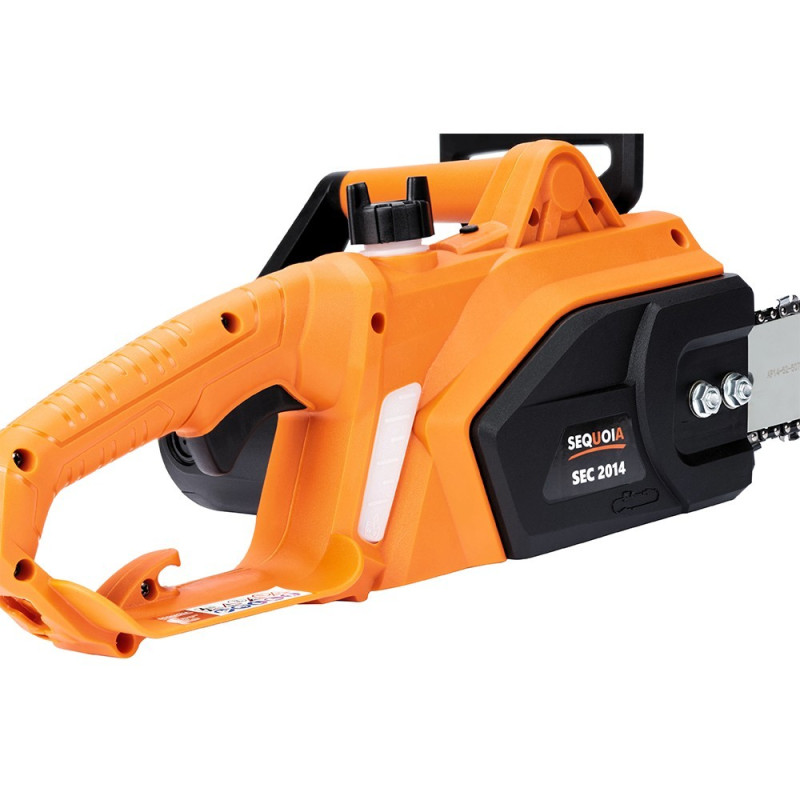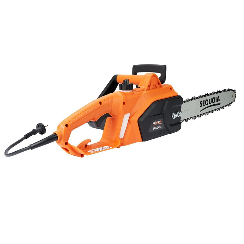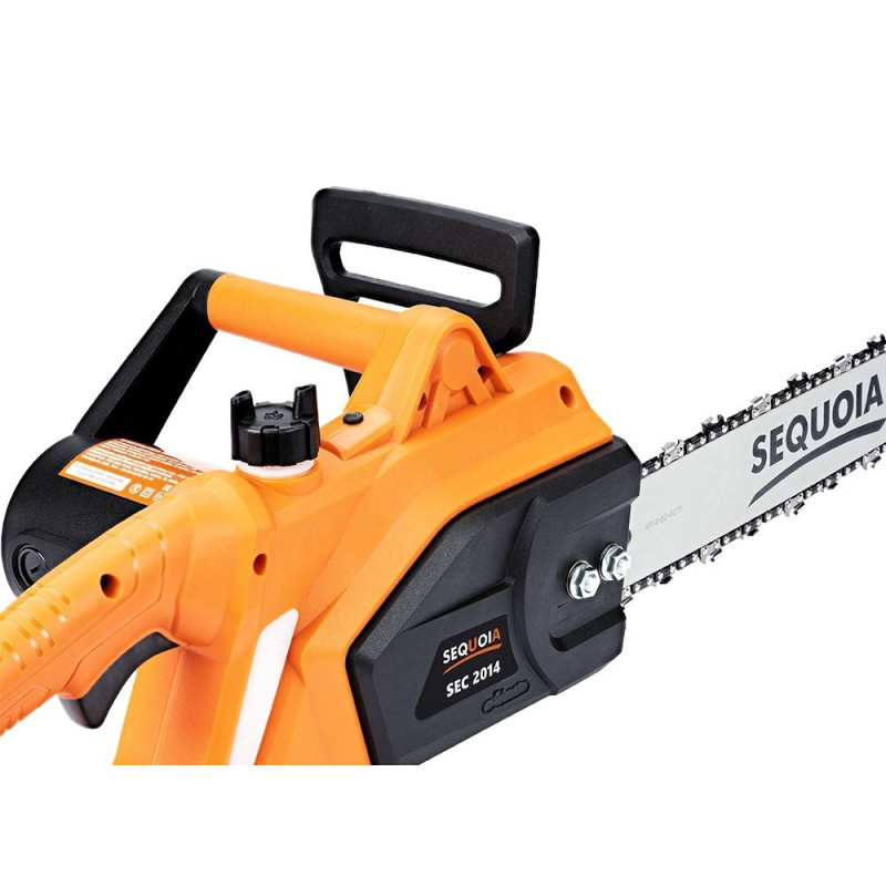 Електрична ланцюгова пила SEQUOIA SEC2014 потужністю 2 кВт оснащена шиною 35 см з кроком ланцюга 3/8" та товщиною 1,3 мм. Поперечне розташування двигуна забезпечує зручний баланс і контроль під час різу. Швидкість ланцюга 15 м/с та автоматична система змащення підтримують стабільну роботу з деревиною середньої твердості. Вага 4 кг полегшує тривале використання. Захист від перевантаження контролює струм і запобігає перегріву двигуна.