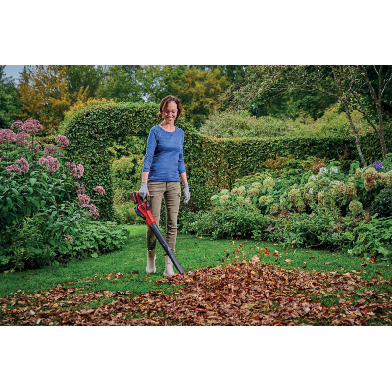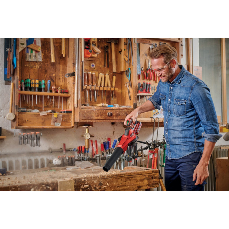 Акумуляторний повітродув Einhell GE-UB 18/250 Li E з електронним регулюванням швидкості — універсальний інструмент для дому та саду. Працює від 18 В акумулятора Power X-Change. Має змінні насадки: для листя, майстерні або розпалювання гриля. Оснащений LED-дисплеєм, м’якою рукояткою та настінним кріпленням. У комплекті акумулятор 4 Аг і зарядний пристрій.