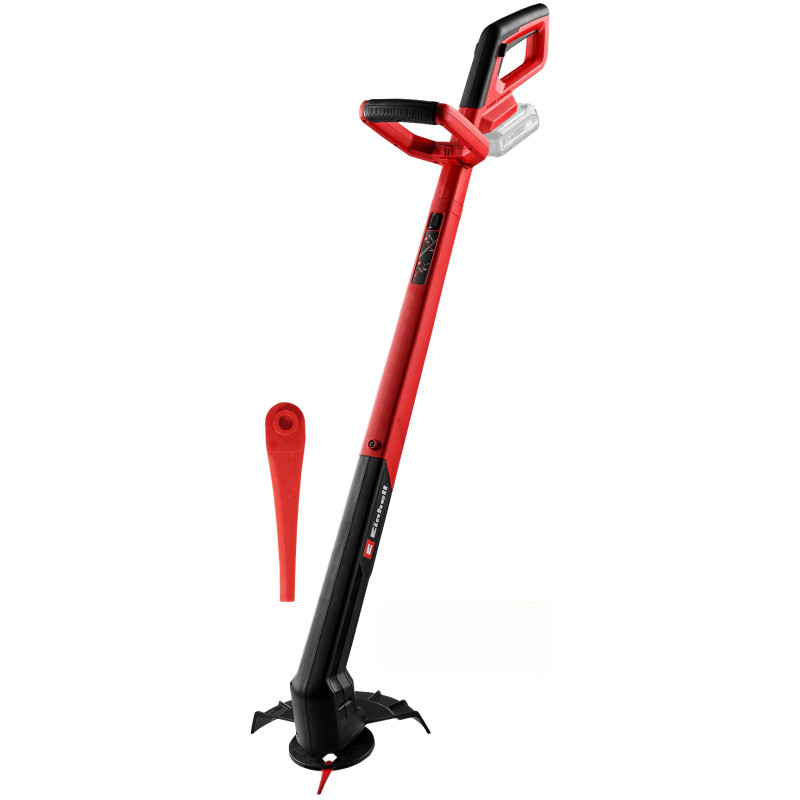 Акумуляторний тример Einhell GC-CT 18/2411 Li P – Solo — компактний і легкий інструмент для точного окантування країв і підкошування газону. Працює в системі Power X-Change, має головку, що обертається на 180°, ергономічну конструкцію та додаткову рукоятку з м’яким покриттям. У комплекті 20 пластикових ножів із покращеним тримачем.