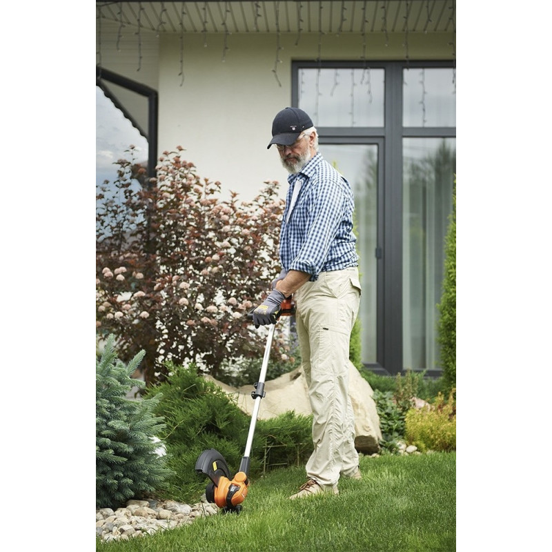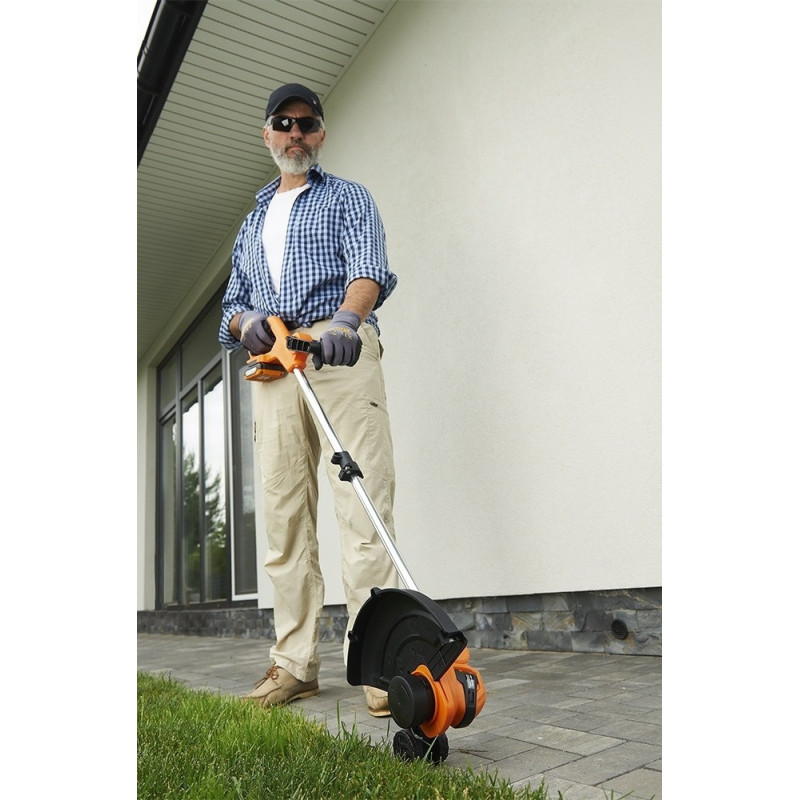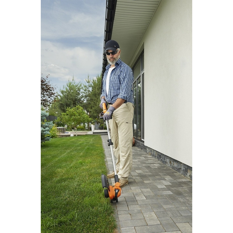 Акумуляторний триммер SEQUOIA SBT2030D-QV працює від акумулятора 20 В ємністю 2 А·год і оснащений щітковим двигуном з максимальною швидкістю 9000 об/хв. Ширина скошування 30 см дозволяє обробляти газони, узбіччя та ділянки з травою жилкою. Телескопічна алюмінієва штанга регулюється по довжині, а поворотна косильна головка з регульованим кутом нахилу спрощує роботу біля перешкод. Напрямний ролик підтримує стабільну висоту скошування. Вага 1,8 кг робить інструмент зручним для тривалої роботи.