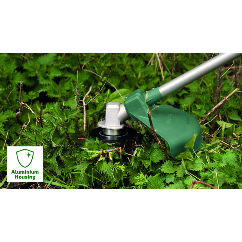 Проста заміна шпульки з волосінню на ніж. Потужність 1,3 к.с. забезпечує досягнення максимального результату різання. Регульований ремінь і зручний дизайн ручки забезпечує оптимальне балансування інструменту для будь-якого користувача. Просте зберігання ріжучої волосіні в ручці інструменту.