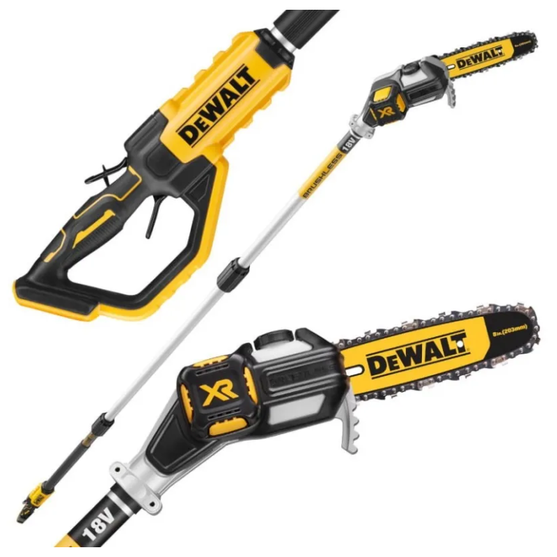 Акумуляторний висоторіз DeWalt DCMPS567N XR 18В — безщітковий інструмент зі штангою 180–280 см і шиною 20 см. Вага — 4,0 кг. Постачається без акумулятора та зарядного пристрою.