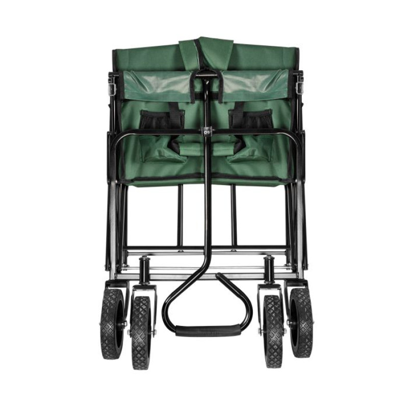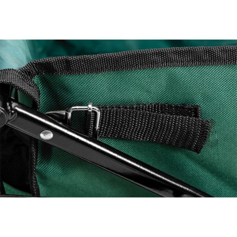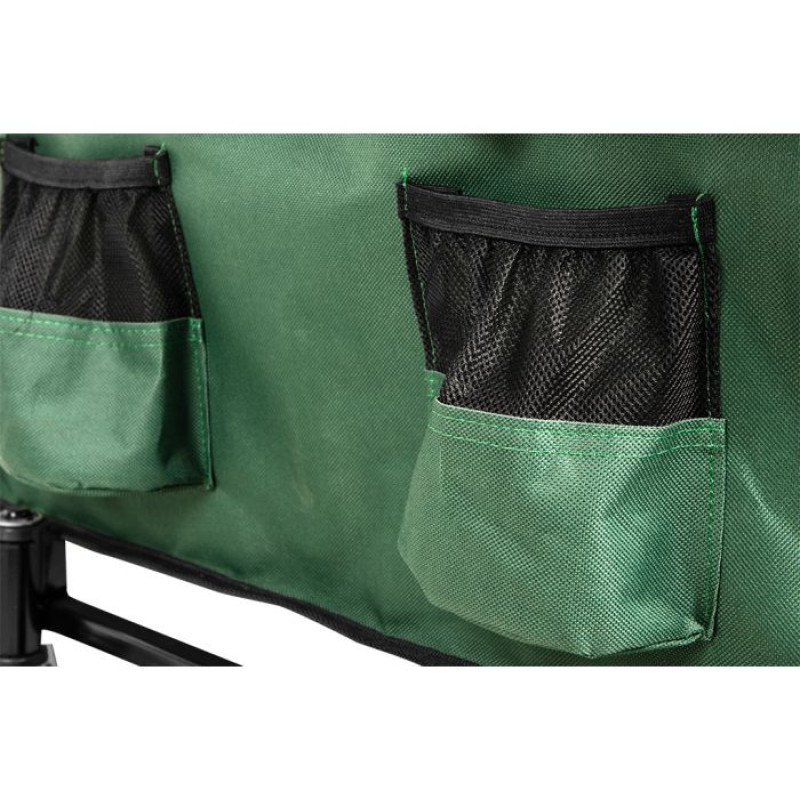 Складний садовий візок Neo Tools 84-405 із сталевою рамою та нейлоновим полотном 600D розрахований на перевезення інструментів, ґрунту, врожаю та господарських вантажів до 80 кг. Розміри 90×50×113 см і завглибшки 30 см дають достатній об'єм для великих завантажень, а колеса 8" забезпечують стійкий рух по нерівному ґрунту. Два бічні кармани зручні для дрібного садового приладдя. Складна конструкція мінімізує місце під час зберігання в сараї чи гаражі.