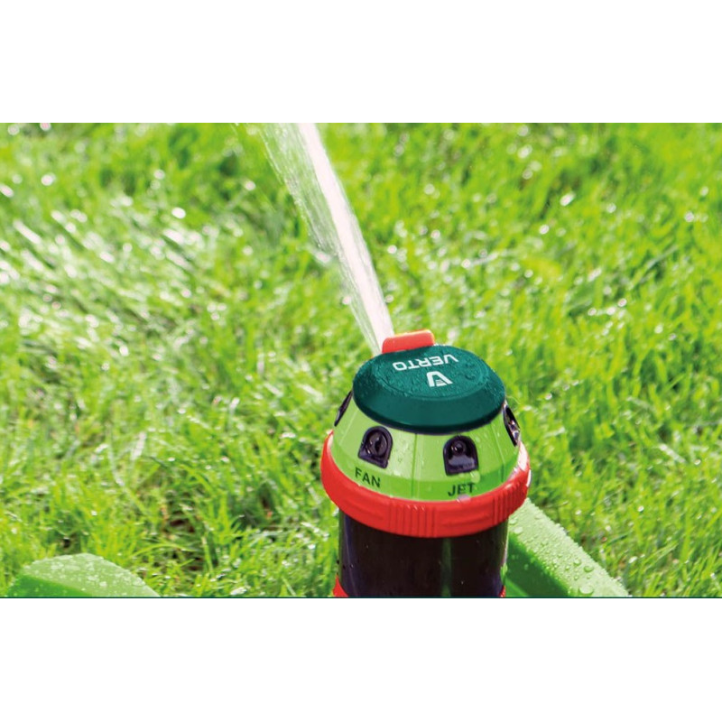Шести секторний зрошувач з приводом, який дозволяє ефективно поливати навіть при більш низькому тиску води. Стабільна основа і регульований діапазон і кут нахилу потоку забезпечують рівномірне зволоження. Завдяки приводу максимальна площа поливу складає 350 м2. 6 різних режимів поливу дозволяють вибрати оптимальний тип струї для надання форми зрошуваною поверхні.