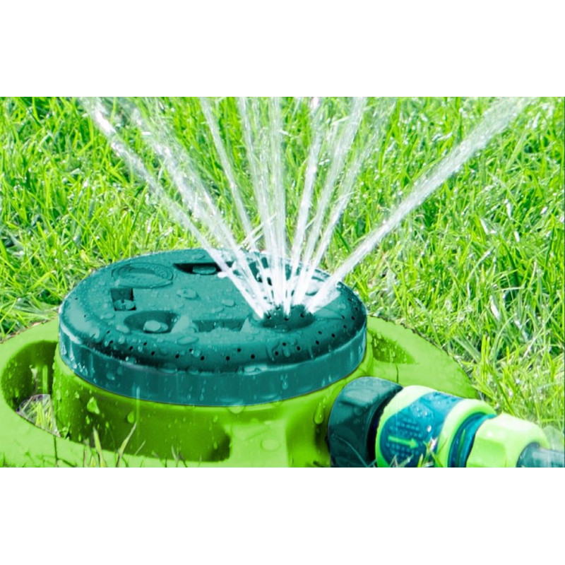 Класичний садовий спринклер, призначений для рівних поверхонь, що забезпечує рівномірний розподіл води по обраній площі. Продукт від бренду VERTO оснащений цілими 8 практичними функціями, які дозволяють налаштувати діапазон розпилення під індивідуальні потреби. З його допомогою можна поливати газон у формі квадрата, прямокутника, кола, півкола, смугою, а також кільцем і обертанням. Максимальна площа поливу до 125 м2. Виріб виготовлено з високоякісного ABS пластику, що забезпечує багаторічну експлуатацію спринклера.