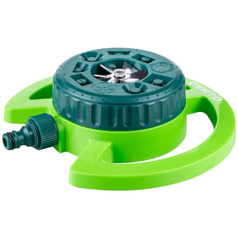 Класичний садовий спринклер, призначений для рівних поверхонь, що забезпечує рівномірний розподіл води по обраній площі. Продукт від бренду VERTO оснащений цілими 8 практичними функціями, які дозволяють налаштувати діапазон розпилення під індивідуальні потреби. З його допомогою можна поливати газон у формі квадрата, квадрата із закругленими кутами, прямокутника, кола, півкола, смуги, а також кільцевим і поворотним способом. Максимальна площа поливу до 95 м2. Виріб виготовлено з високоякісного ABS-пластику та металевої спринклерної системи, яка призначена для забезпечення багаторічної експлуатації спринклера.
