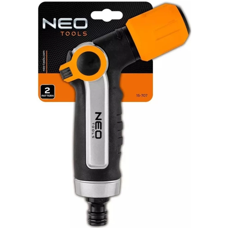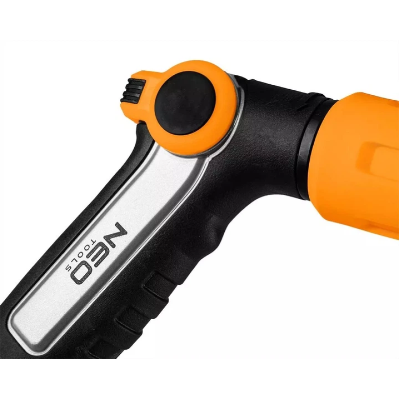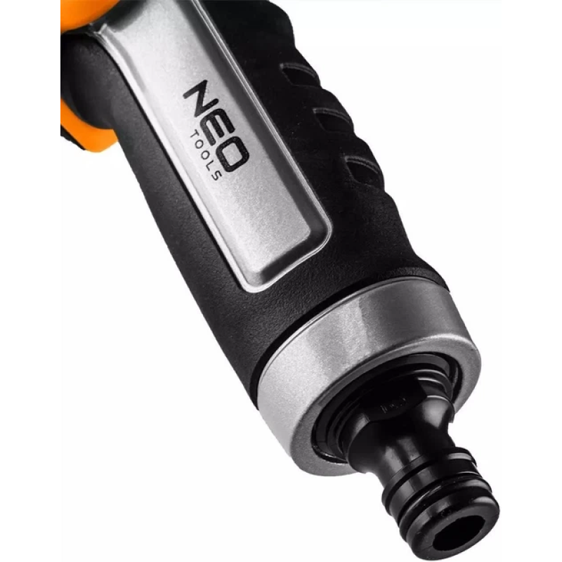Пістолетний зрошувач Neo Tools 15-707 CLICK із 2 режимами подачі води — компактний інструмент для щоденного поливу саду, газону та розсади. Система CLICK забезпечує швидке під'єднання до шланга без зайвих зусиль. Ергономічна рукоятка комфортно лежить у руці під час тривалої роботи. Вага 0,242 кг робить зрошувач зручним для використання однією рукою.