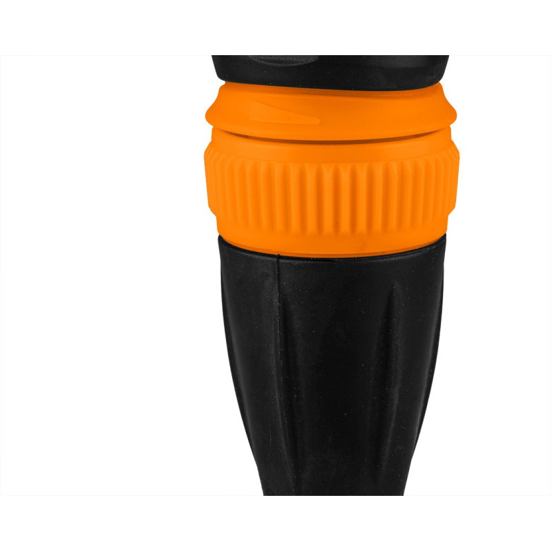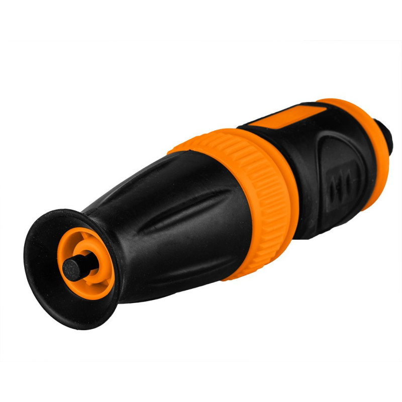 Зрошувач прямий, 15-700, NEO, призначений для поливу газонів, садів та сільськогосподарських ділянок. Зручний ручний зрошувач. Частина ручки виготовлена з гуми, що полегшує керування ним. Оснащений можливістю регулювання сили розпилення. Зрошувач може також служити для інших робіт, наприклад для миття машини, очищення під'їзної доріжки або майданчика. Доступні функції поливу: від потужного точкового розпилення до туману.