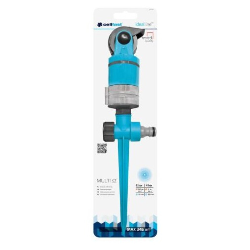 Зрошувач секторний Cellfast MULTI, до 346 м2, 4 функції, регулювання сектора зрошення 52-060. Багатослиговий спринклер ідеального сектору, який має 4 функції, виготовлений з самих пластикових матеріалів. Високоякісне поступове регулювання струменя води в 4 різних установах поступово, коригування сектору зрошення від 20 ° до 360 °. Можливість встановлення зрошувальної поверхні за допомогою мобільної головки - це зрошувальна поверхня до 346 м2. Можливість підключення до системи великої кількості іригаторів.