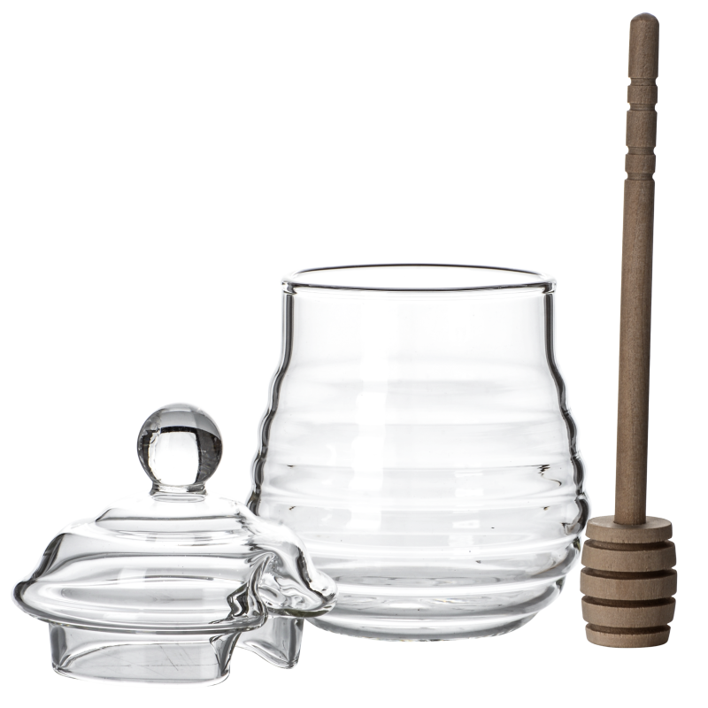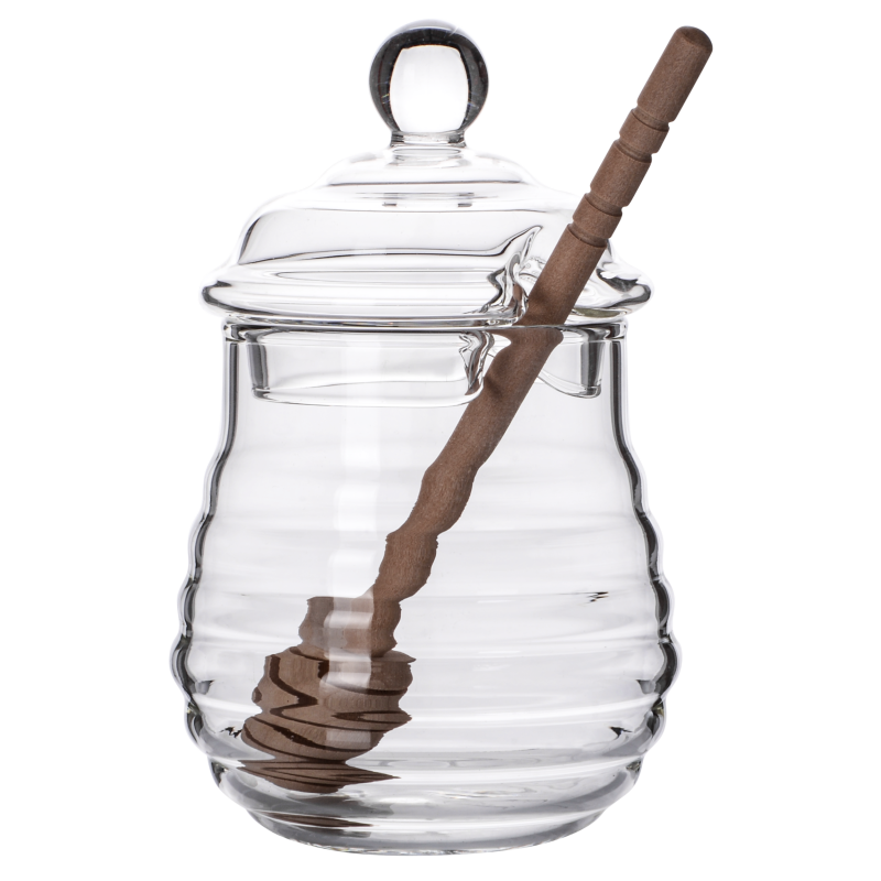 Банка Honey з дерев'яною ложкою Об'єм: 0.28 л Матеріал: скло, дерево Матеріал кришки: скло