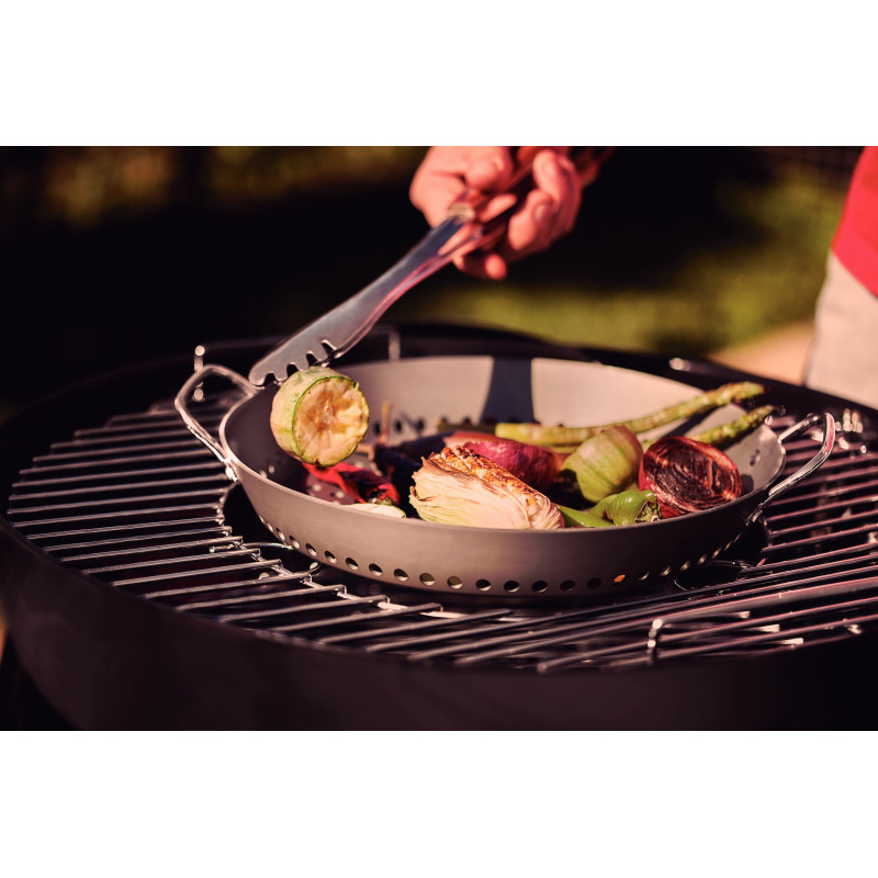 - Він ідеально підходить для смаження овочів і риби, а також для використання на вугільних грилях.