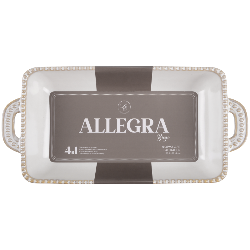 Форма Allegra Biege Розмір: 34.5x17x6 см Матеріал форми: кам'яна кераміка Форма: прямокутна Колір: бежевий