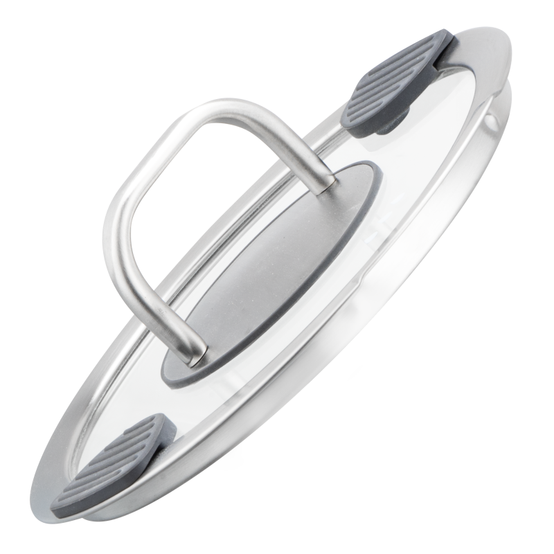 - Кришка з термостійкого скла із силіконовими вставками й отвором для зручного зливу рідини