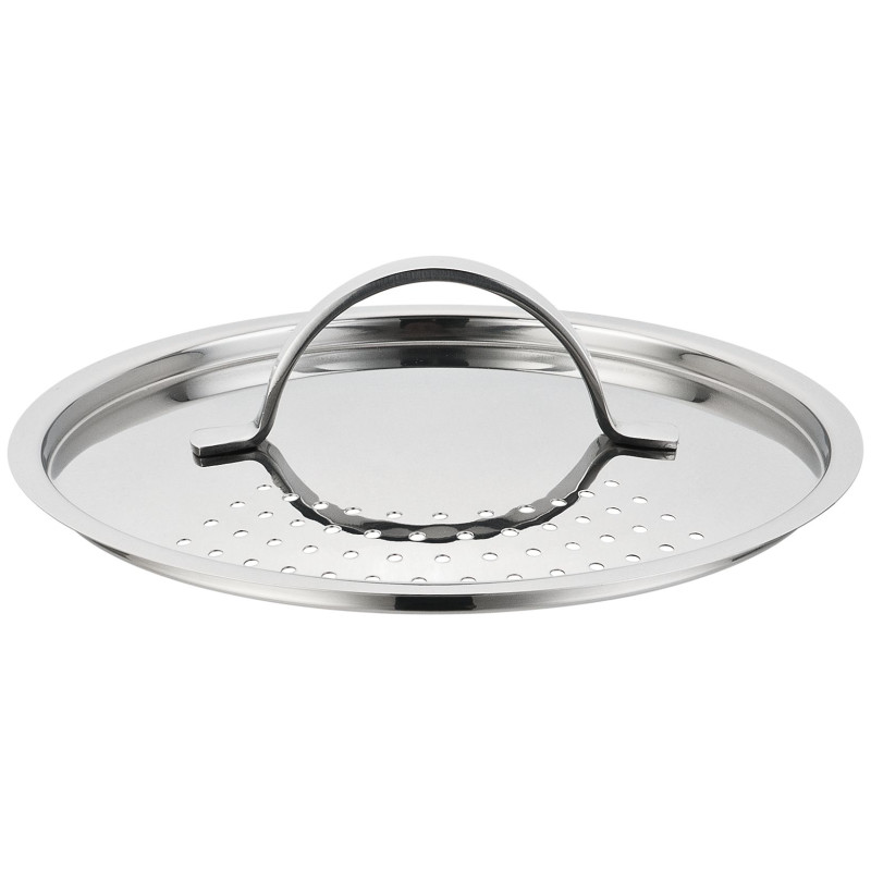 - Кришка з нержавіючої сталі з дренажними отворами для зливу рідини та випуску пари під час приготування