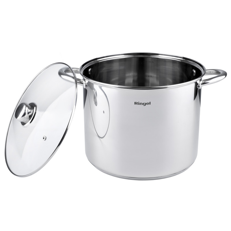 Всі каструлі RINGEL вироблені за найновітнішою технологією зберігання тепла. Потовщене капсульне дно швидко та рівномірно передає тепло страві, що дозволяє скоротити час на приготування та зберегти максимум корисних речовин у стравах. А потовщені стінки каструль RINGEL забезпечують максимально довге утримання страви теплою, без необхідності додаткового розігрівання.Колекція Dresden, відрізняється каструлями циліндричної форми з високими стінками і великого об'єму, для приготування джемів, консервації або використання в ресторанно-готельний сфері. Дзеркальне зовнішнє і внутрішнє оздоблення виглядає естетично, а наявність мірної шкали, дозволяє з легкістю точно відміряти об'єм рідини для приготування.