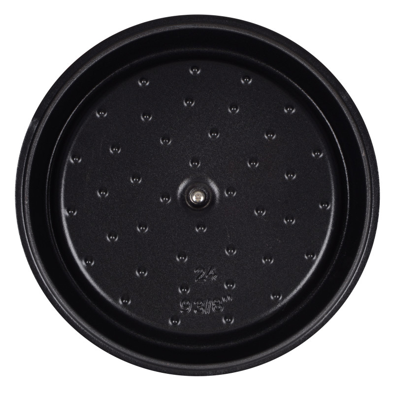- Кришка має фактурну форму, яка підтримує правильну циркуляцію водяної пари (крапельна циркуляція), завдяки чому страва томиться у власному соусі, залишається соковитою і зберігає свою поживну цінність