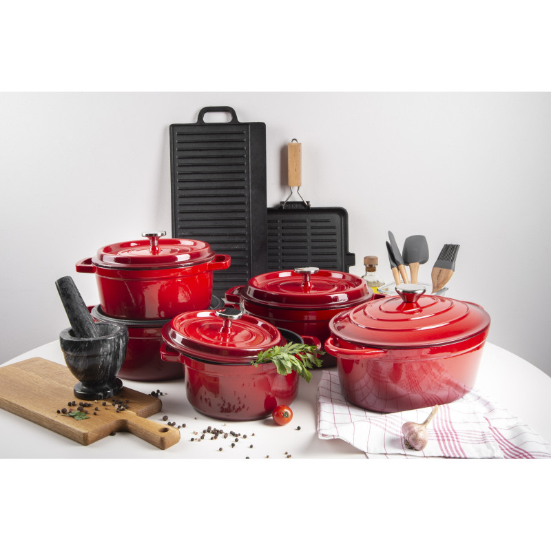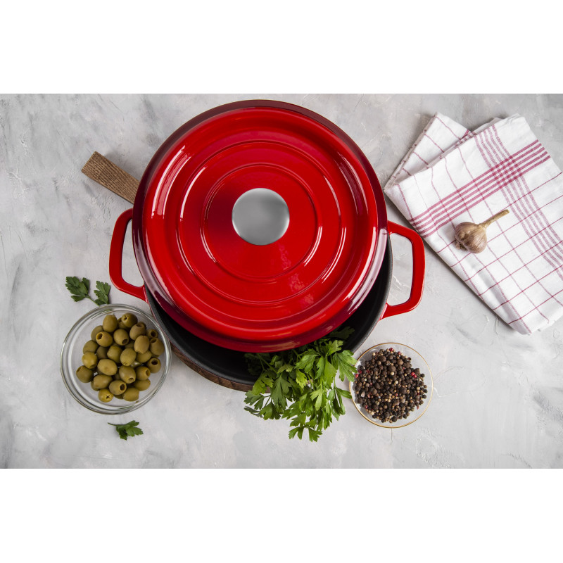 - Каструля та кришка виготовлені з екологічно чистого, безпечного та мегадовговічного чавуну
