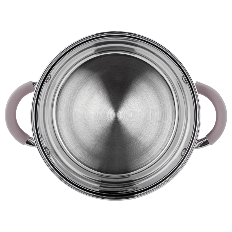 Потрійне капсульне дно забезпечує рівномірний розподіл тепла по дну та стінкам каструлі. Ергономічні ручки виконані з нержавіючої сталі із силіконовими накладками сірого кольору, які перешкоджають нагріванню. Мають надійне клепочне кріплення, яке забезпечить комфорт і безпеку під час приготування.
