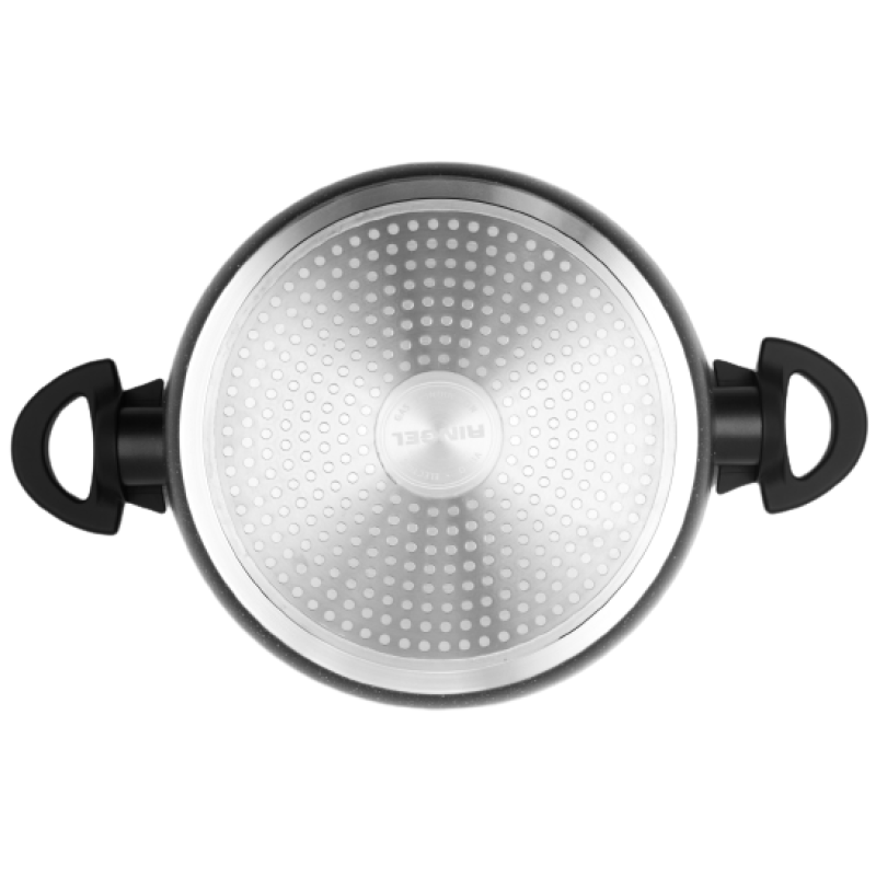Завдяки тому, що каструля Ringel виготовлена з товстостінного алюмінію, вона має цілу низку істотних переваг: не боїться високотемпературного нагріву, не деформується, володіє легкою вагою, відмінно розподіляє тепло в рівній мірі по всій робочій поверхні.