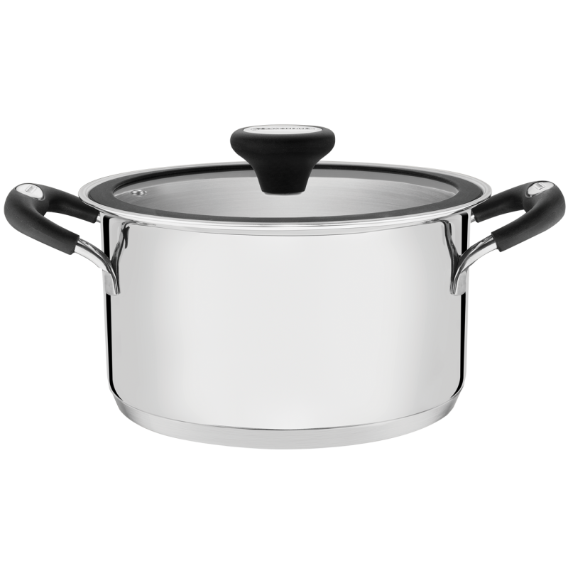 - Тришарове дно (нержавіюча сталь 18/10 - алюміній - нержавіюча сталь 18 / Cr), в результаті чого рівномірно розподіляє тепло, що забезпечує швидшу, рівномірну підготовку та економію енергії.