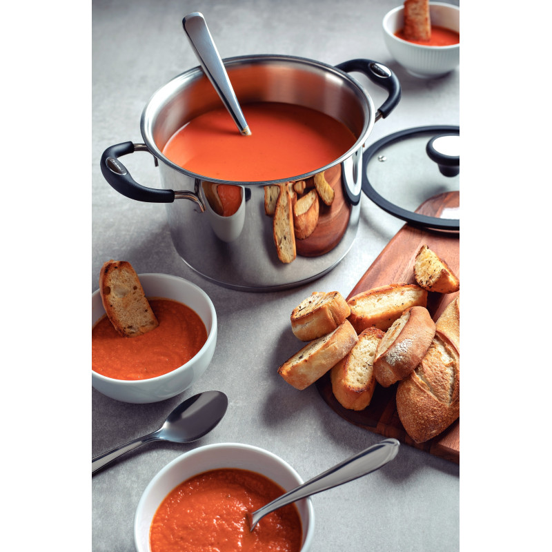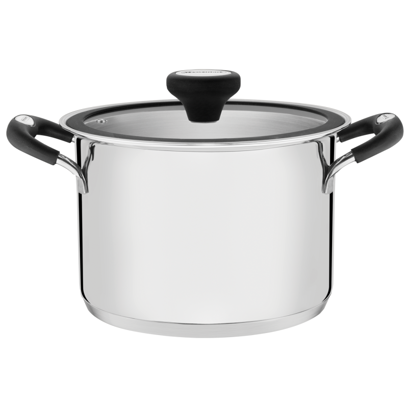 - Тришарове дно (нержавіюча сталь 18/10 - алюміній - нержавіюча сталь 18 / Cr), в результаті чого рівномірно розподіляє тепло, що забезпечує швидшу, рівномірну підготовку та економію енергії.