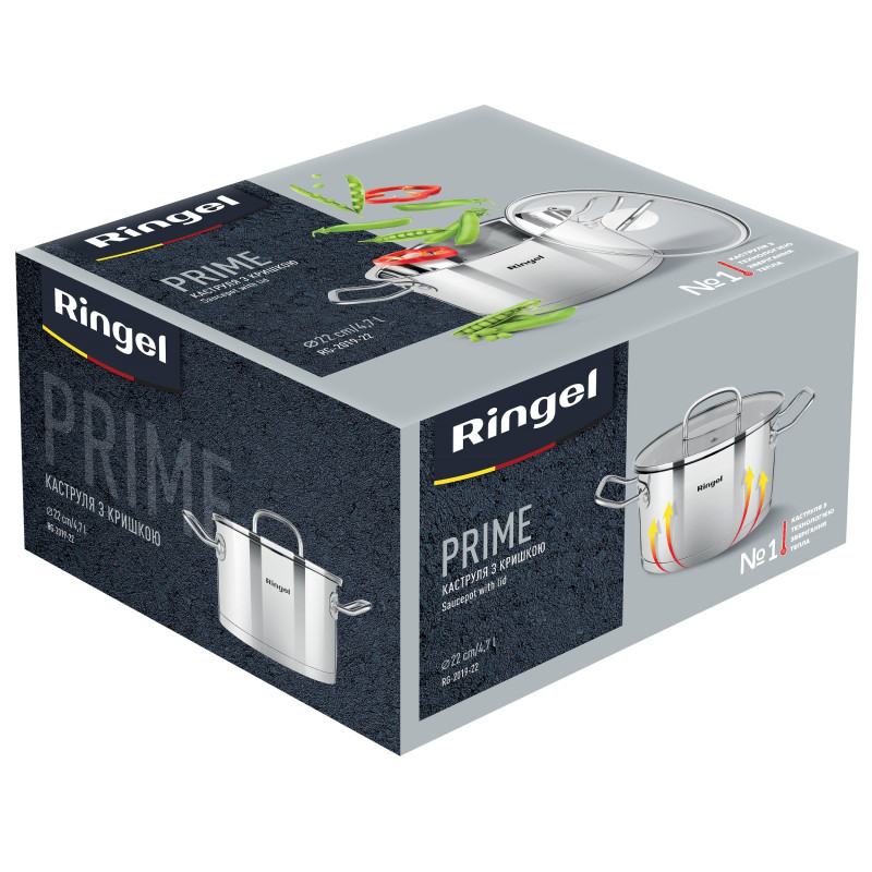 Усі каструлі RINGEL вироблені за найновітнішою технологією зберігання тепла. Потовщене капсульне дно швидко та рівномірно передає тепло страві, що дозволяє скоротити час на приготування та зберегти максимум корисних речовин у стравах, а потовщені стінки каструль RINGEL забезпечують максимально довге утримання страви теплою, без необхідності додаткового розігрівання.