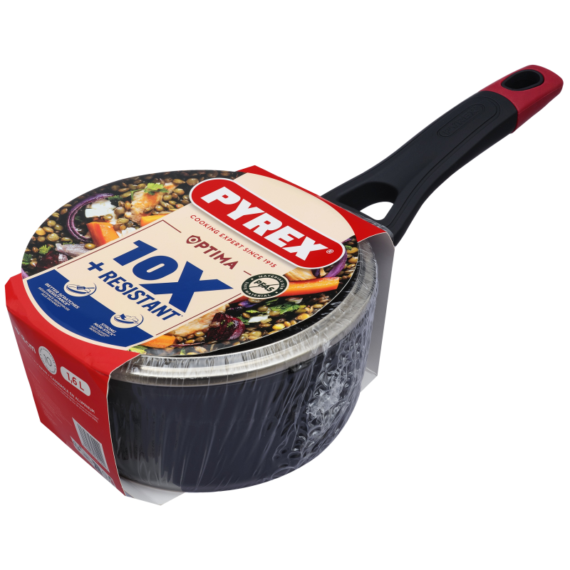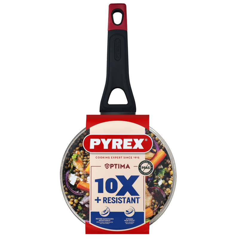 Серія Pyrex Optima – це посуд з кованого алюмінію з міцним антипригарним покриттям Whitford Xylan+. Ексклюзивна Y-подібна ручка з ергономічним дизайном і soft touch покриттям забезпечує комфорт та безпеку використання. Яскравий силіконовий акцент додає стилю. Підходить для всіх типів плит, включаючи індукційні.