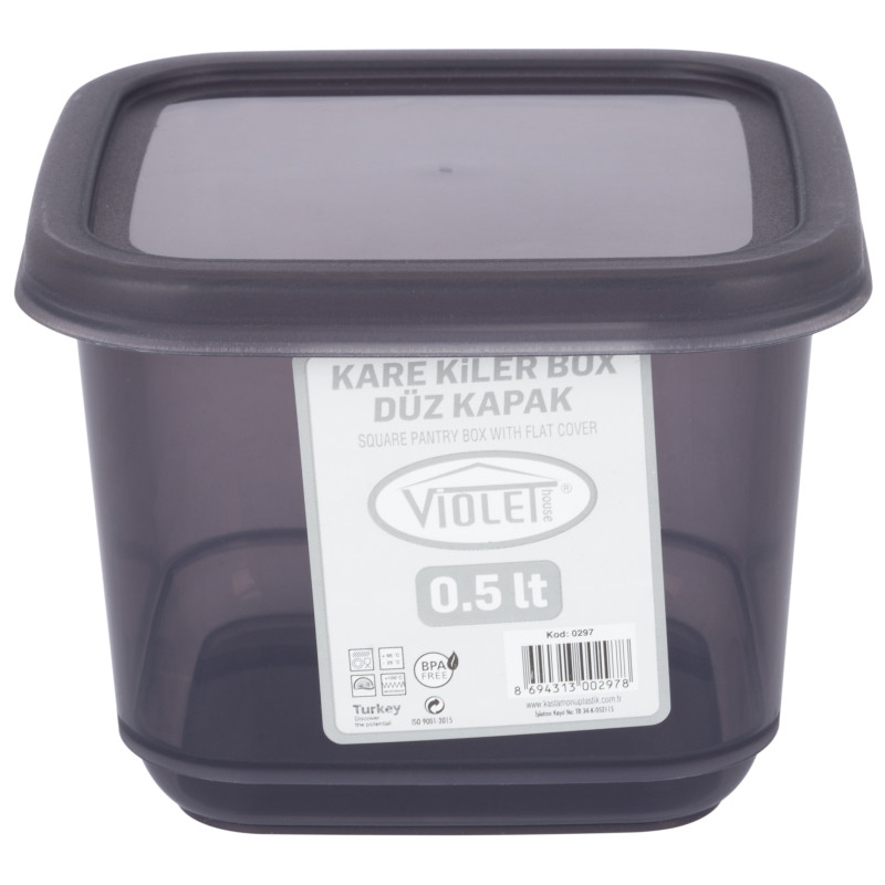 Контейнер для сипучих продуктів 0.5 л VIOLET HOUSE 0297 Transparent Black. Контейнер виготовлений з якісного харчового пластику підходить для зберігання сипучих продуктів. Кришка міцно закривається і захищає вміст контейнера від потрапляння вологи та запахів. Завдяки прямокутній тонкій формі контейнер зручно тримати в руках.