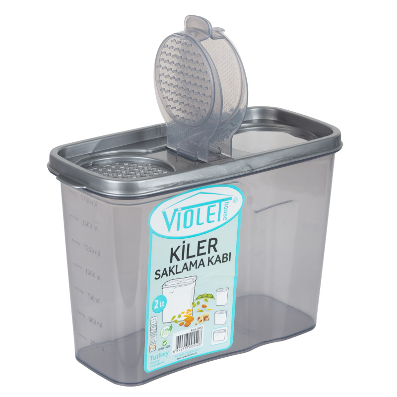 Контейнер для сипучих продуктів 2л VIOLET HOUSE 0552 Transparent Black. Контейнер виготовлений з якісного харчового пластику підходить для зберігання сипучих продуктів. Кришка міцно закривається і захищає вміст контейнера від потрапляння вологи та запахів. Завдяки прямокутній тонкій формі контейнер зручно тримати в руках.