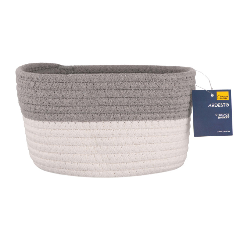 Кошик плетений для зберігання ARDESTO Vigor 3.5л, бавовняний шпагат, сірий, білий