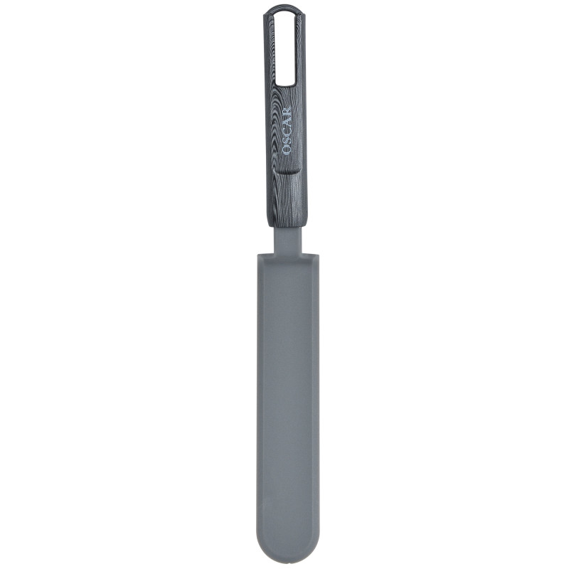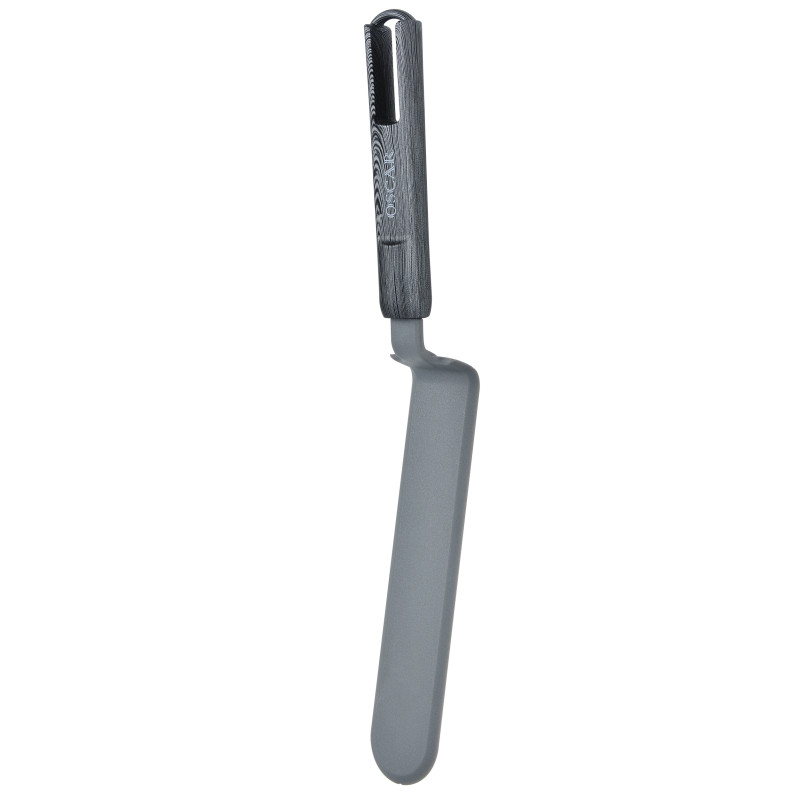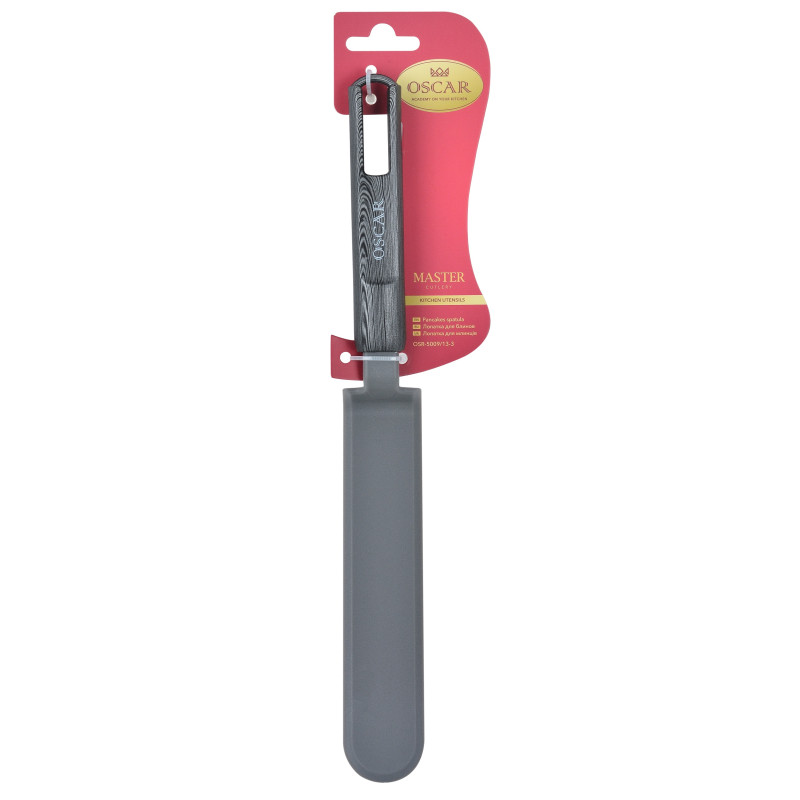 Робоча частина лопатки виготовлена з безпечного для здоров’я, харчового термостійкого нейлону. Цей матеріал витримує дуже високі температури, не пошкоджує посуд, навіть з антипригарним покриттям. До того ж, цей матеріал не вбирає сторонні запахи та легко очищується. Зручна довжина лопатки Oscar Master та її ручки зроблять приємним не лише куштування млинців, але і сам процес їх приготування. Пластикова ручка має приємне на дотик, антиковзаюче покриття soft-touch і отвір для легкого розташування на гачках.
