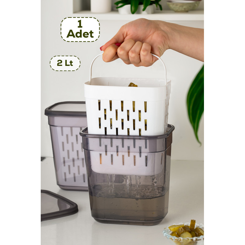 Мийка для овочів VIOLET HOUSE 0544 Transparent 2 л виготовлена з безпечних матеріалів, що не впливають на якість і смак овочів. Складається з контейнера з перфорацією, без перфорації та кришки. Завдяки 2 контейнерам і наявності кришки крім миття ідеально підходить для зберігання продуктів у рідині, і без рідини.