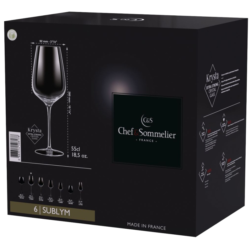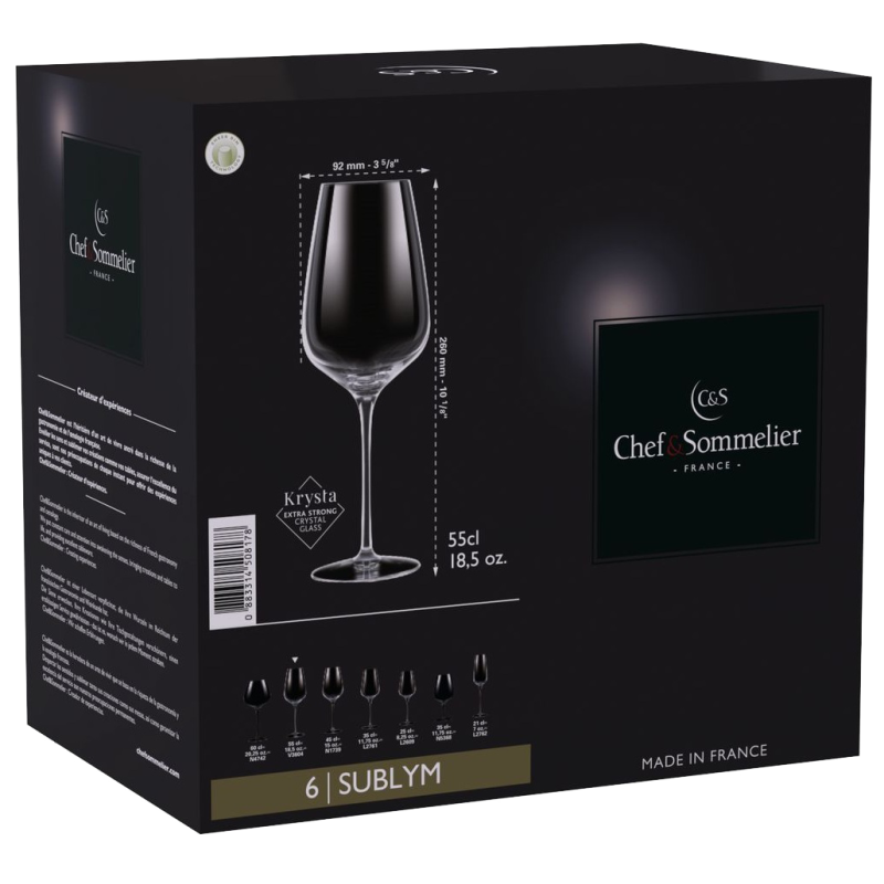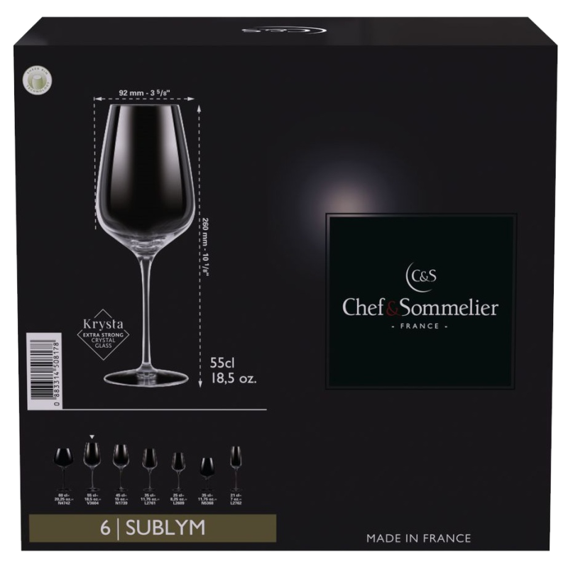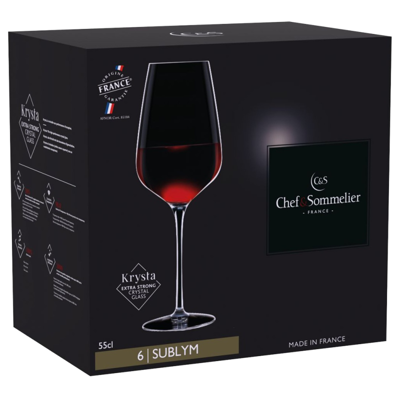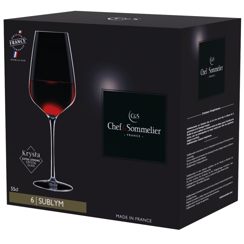 Бренд Chef&Sommelier належить компанії ARC International - лідеру серед виробників скляного посуду. Серед колекцій Chef&Sommelier є свої келихи для кожного сорту вина. Головною особливістю келихів Chef & Sommelier є унікальний матеріал Kwarx, запатентований компанією ARC International. Це абсолютно прозоре скло. Келихи з Kwarx мають приємний протяжний дзвін, прозорість і блиск. У той же час вони неймовірно міцні, захищені від відколів і подряпин навіть при частому митті в посудомийній машині. Прозорість матеріалу не спотворює справжній колір вина. Форма келихів, увігнута до вершини, дозволяє концентрувати смак вина у верхній частині келиха. Велика площа сприяє насиченню вина киснем і розкриттю всього букета. У келихах Chef&Sommelier аромат вина спрямовується догори, що сприяє повноцінному сприйняттю кожного його компонента.