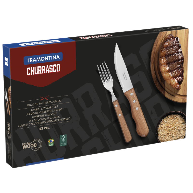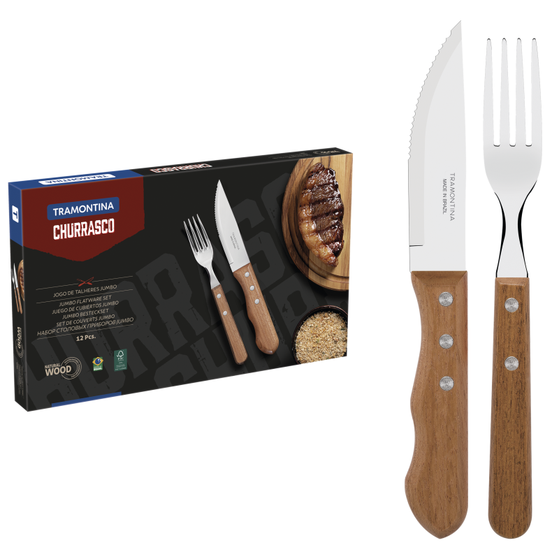 - Щоб насолодитися особливим барбекю з родиною та друзями, обирайте цей набір Tramontina для барбекю із 12 предметів з лезамиз нержавіючої сталі та ручками з натурального дерева.