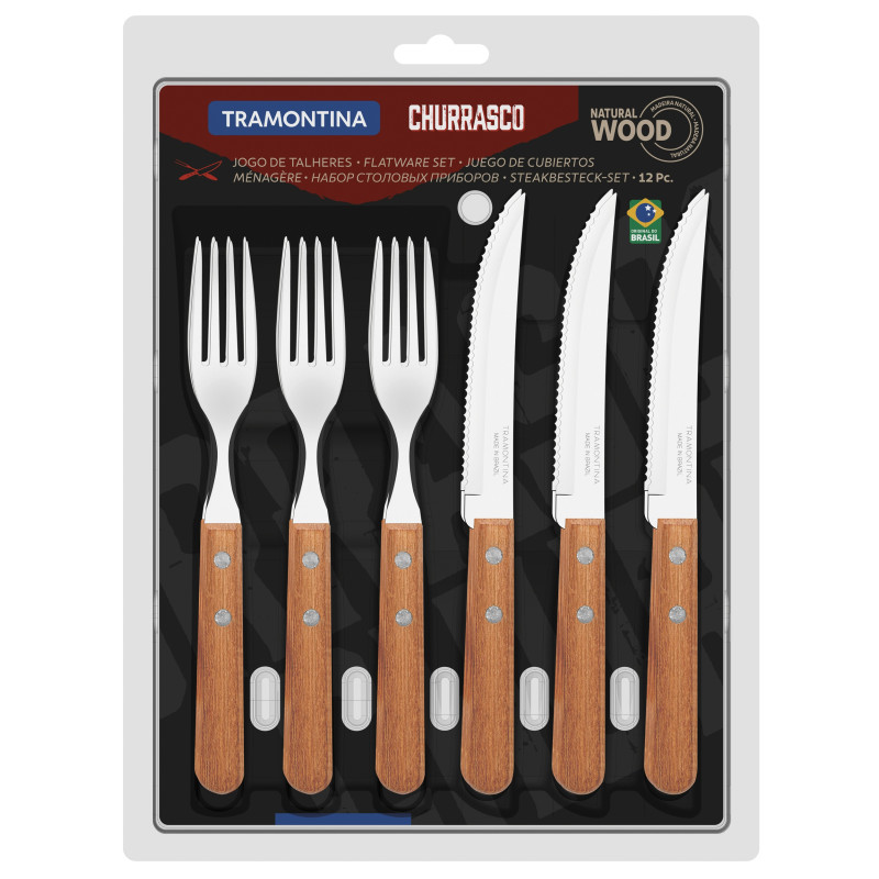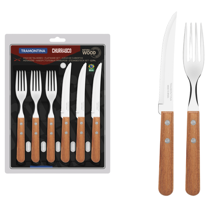 - Набір столових приборів Tramontina з 12 предметів з лезами з нержавіючої сталі та ручками з натурального дерева - це ідеальний вибір для комфорту ваших зустрічей за смачним столом.
