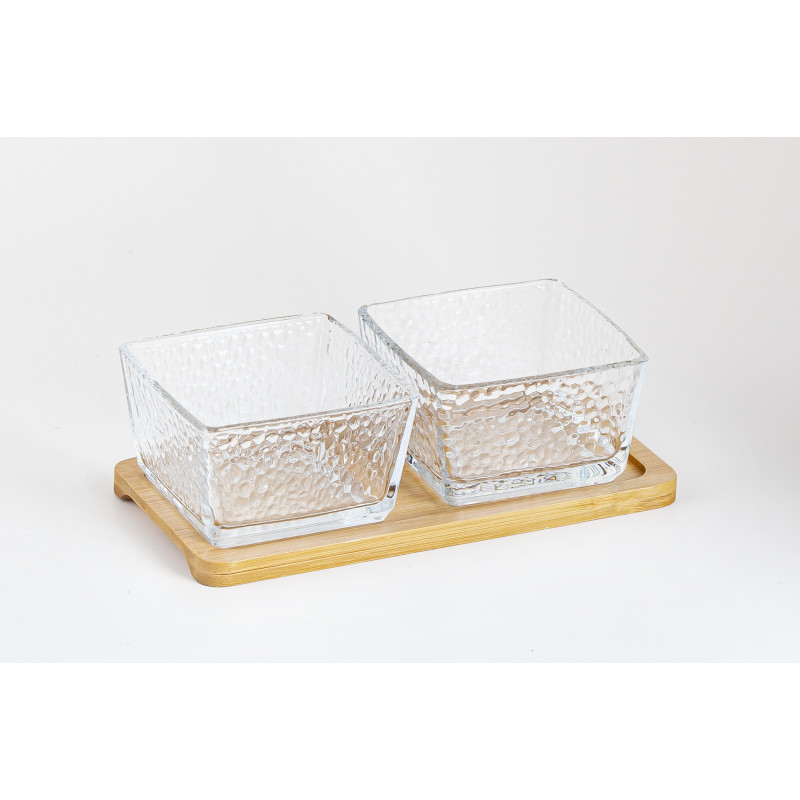 Салатник Bamboo Об'єм: 250 мл Матеріал: скло Матеріал підставки: бамбук Форма: квадратна Кількість предметів: 2 шт.