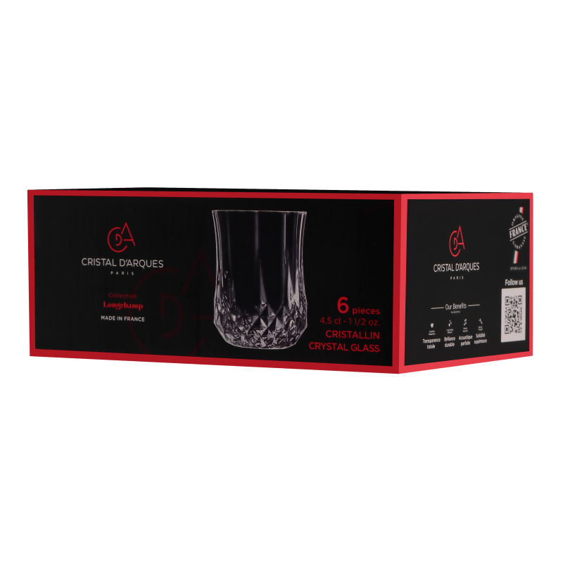 Стопки LONGCHAMP створені з інноваційного скла Cristallin, яке має покращені властивості порівняно з класичним склом.