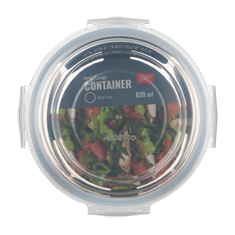 Контейнер для зберігання харчових продуктів ARDESTO Gemini 0.62л, боросилікатне скло, пластик, круглий, прозорий