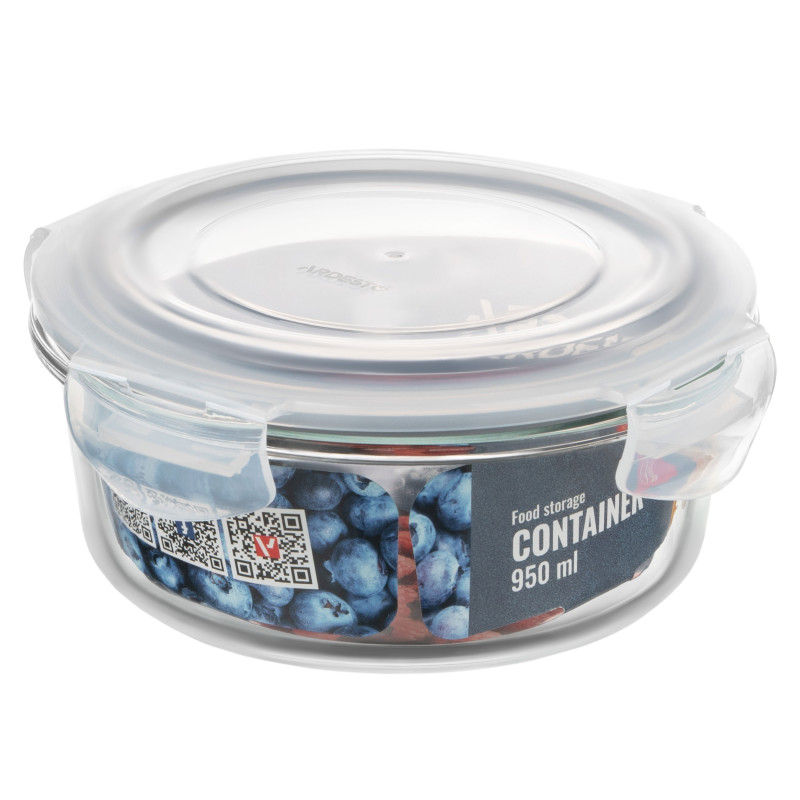 Контейнер для зберігання харчових продуктів ARDESTO Gemini 0.95л, боросилікатне скло, пластик, круглий, прозорий