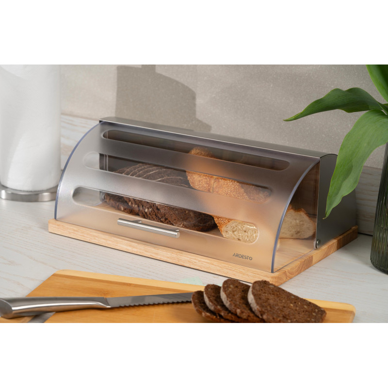 У хлібниці ARDESTO Gemini вироби залишаться свіжими надовго, адже вона запобігає висиханню та захищає від вологи. Виріб має класичну конструкцію з пластику з дерев’яною основою та елементами з нержавіючої стала, тож вона вдало пасуватиме чи не на будь-якій кухні. Розмір хлібниці 39 × 27 × 15 см. Доглядати за виробом нескладно, проте не рекомендовано мити в посудомийній машині.