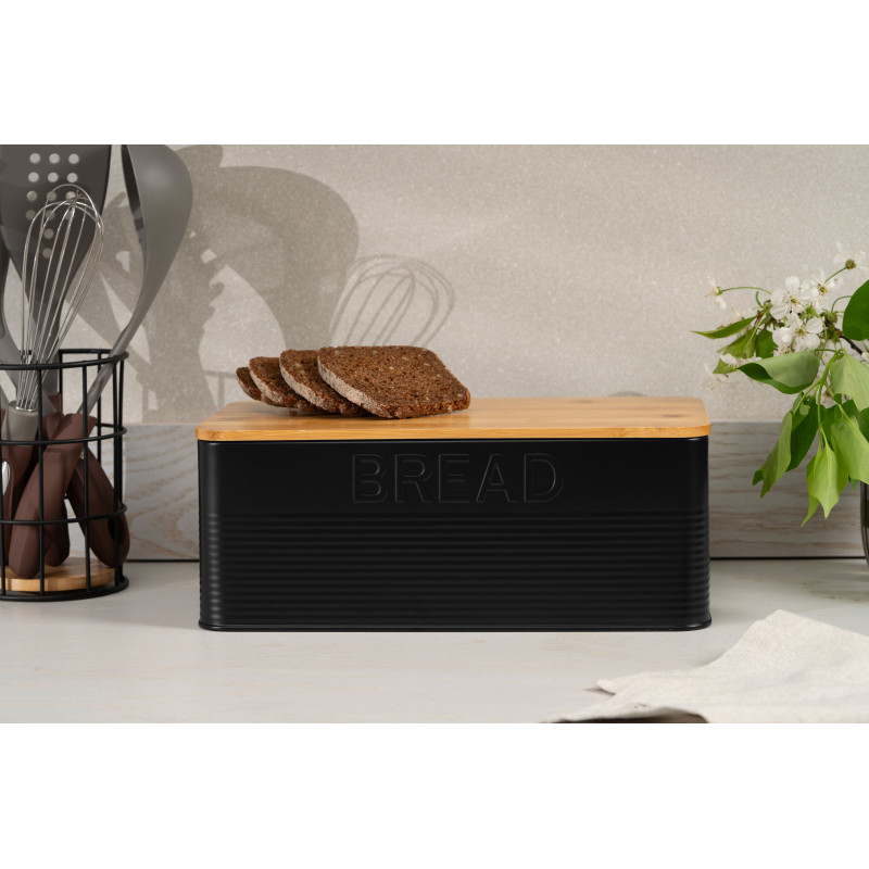 У хлібниці ARDESTO Midori хлібобулочні вироби залишаться свіжими надовго. Герметична кришка запобігає висиханню та псуванню, а також захищає від вологи. Конструкцію прямокутної форми з рельєфними стінками розміром 33 × 13 × 18 см виготовлено з металу чорного кольору та доповнено бамбуковою кришечкою, тож вона вдало пасуватиме чи не на будь-якій кухні. Доглядати за виробом нескладно, проте не рекомендовано мити в посудомийній машині.