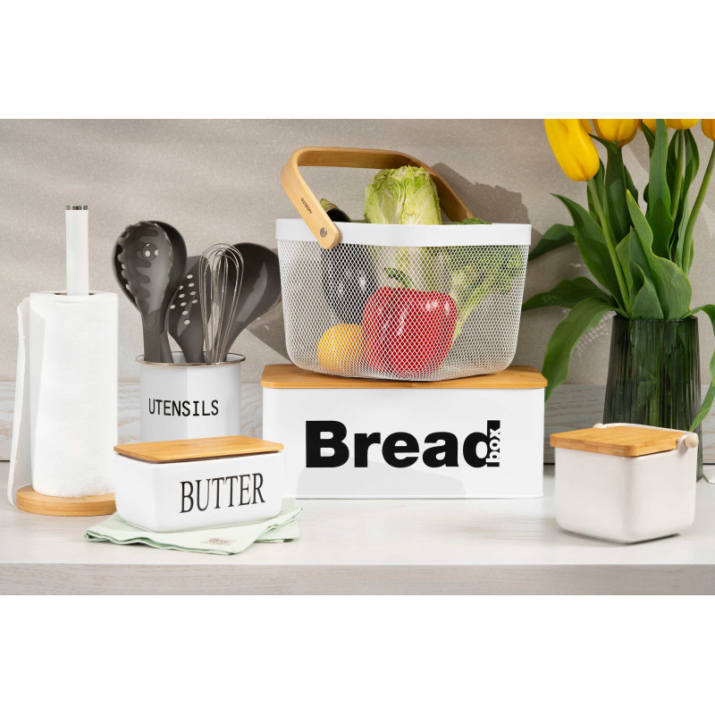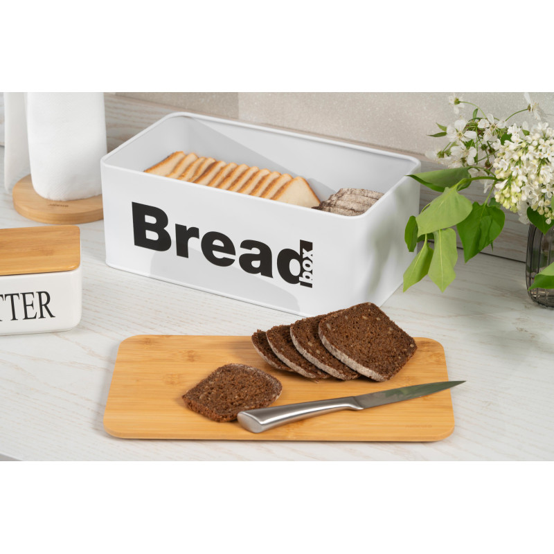 У хлібниці ARDESTO Midori хлібобулочні вироби залишаться свіжими надовго. Герметична кришка запобігає висиханню та псуванню, а також захищає від вологи. Конструкцію прямокутної форми розміром 33 × 18 × 13 см виготовлено з металу білого кольору та доповнено бамбуковою кришечкою, тож вона вдало пасуватиме чи не на будь-якій кухні. Доглядати за виробом нескладно, проте не рекомендовано мити в посудомийній машині.