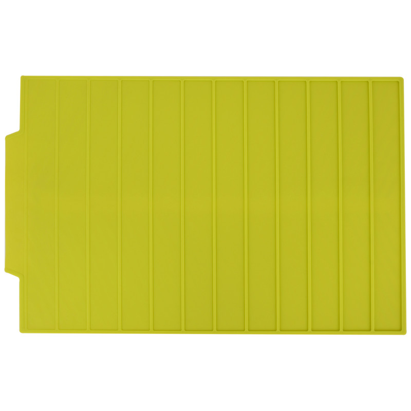 Зручним є також і те, що посуд на ньому не ковзає, а отже, на відміну від подібних килимків, вироблених з інших матеріалів, немає загрози, випадково зачепивши, зіштовхнути каструлю або сковороду на підлогу. Килимок пасує для сушіння посуду, а також як підставка для посуду.