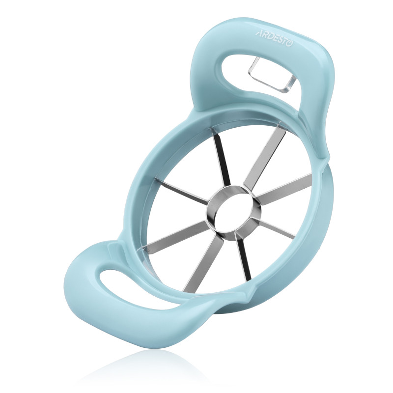 Ніж ARDESTO Fresh згодиться для нарізання яблука середнього розміру на 8 частин і видалення з нього серцевини. Виготовлений із безпечного матеріалу – нержавіючої сталі, яка забезпечує довготривале використання. Руків’я з пластику блакитного кольору. Компактний розмір становить 16,5 × 10 × 4,5 см і забезпечує охайне зберігання. Можна мити у посудомийній машині.