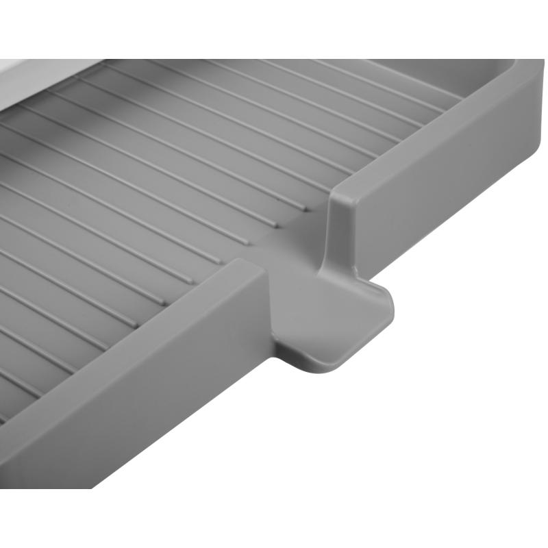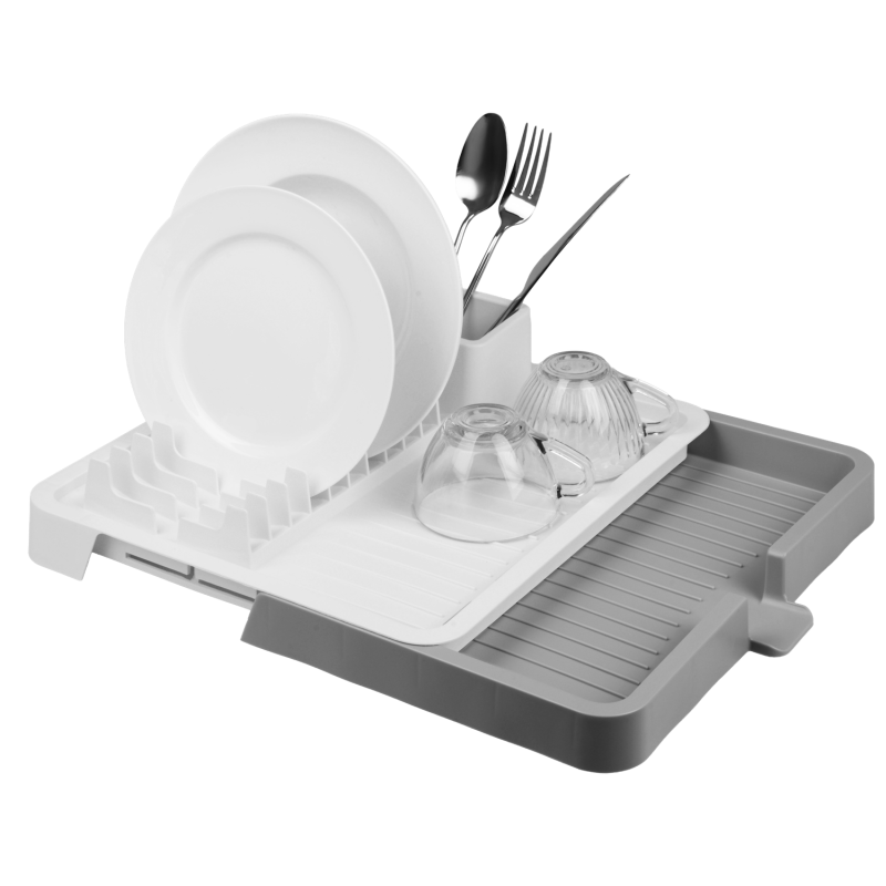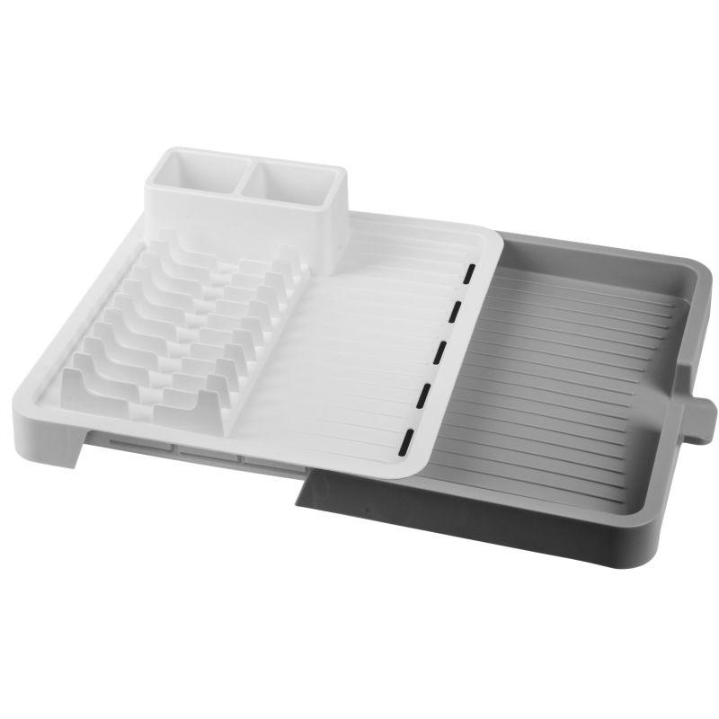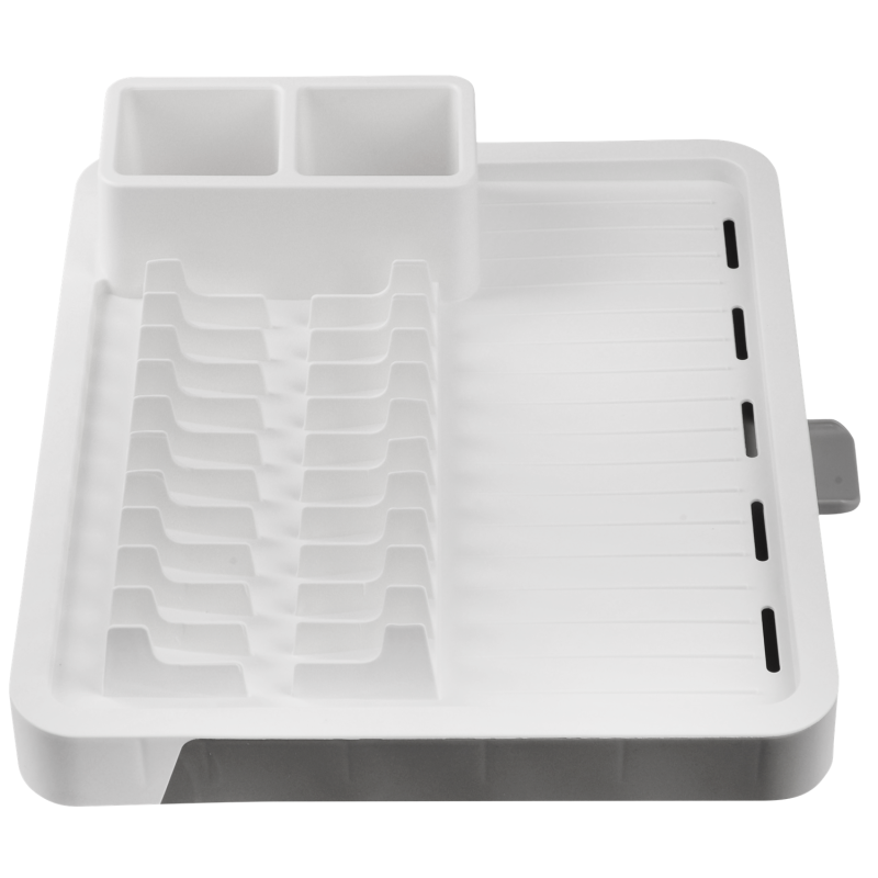 Сушка для посуду розсувна VIOLET HOUSE 0697 — це зручний кухонний аксесуар для сушіння тарілок, столових приборів та іншого посуду після миття. Розсувна конструкція дозволяє регулювати розмір: у складеному вигляді займає 32 см, у розкладеному — до 52 см, що зручно при різному обсязі посуду. Вертикальні секції надійно фіксують тарілки, а знімний піддон збирає воду та легко спорожнюється. Окремий двосекційний відсік для столових приборів дозволяє зберігати ложки, виделки та ножі окремо. Матеріал не вбирає запахи, безпечний для контакту з посудом, стійкий до вологи та легко миється. Колір: білий.